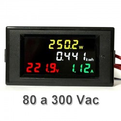 Medidor 4 en 1, de Voltaje, Corriente, Potencia y Energía AC 80.0-300.0V, 0.01-100A, modelo D69-2049, pantalla LCD de alta definición, en colores, que nos hacen ver los parámetros eléctricos muy claramente. Este multímetro puede mostrar el voltaje, corriente, potencia activa (AP) y la energía al mismo tiempo.